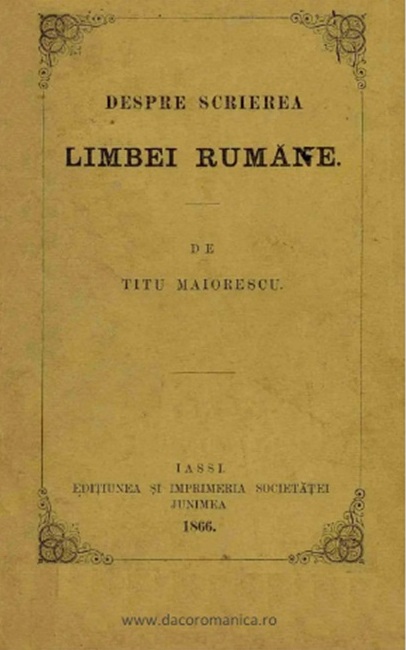 Prin urmare, geneza lucrării ,,Despre scrierea limbei române”, apărută în 1866, se află în dezbaterile “Junimii”. Titu Maiorescu notează în “Însemnările” sale din octombrie 1866: ,,În iunie am terminat cartea mea „Despre scrierea limbei române”, a cărei idee fundamentală o concepusem în noaptea de 15/16 noiembrie, 1865. Important pentru mine, este cea dintâi a mea lucrare originală și concepută cu iuțeala fulgerului”. În scrierea cu alfabet latin, un vechi deziderat al Școlii Ardelene, se ivesc două mari dificultăți: pe de o parte, alfabetul latin are o serie de litere ce nu mai corespund sunetelor limbii române, pe de altă parte, același alfabet nu are semnele corespunzătoare pentru unele sunete românești.